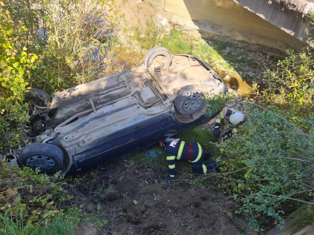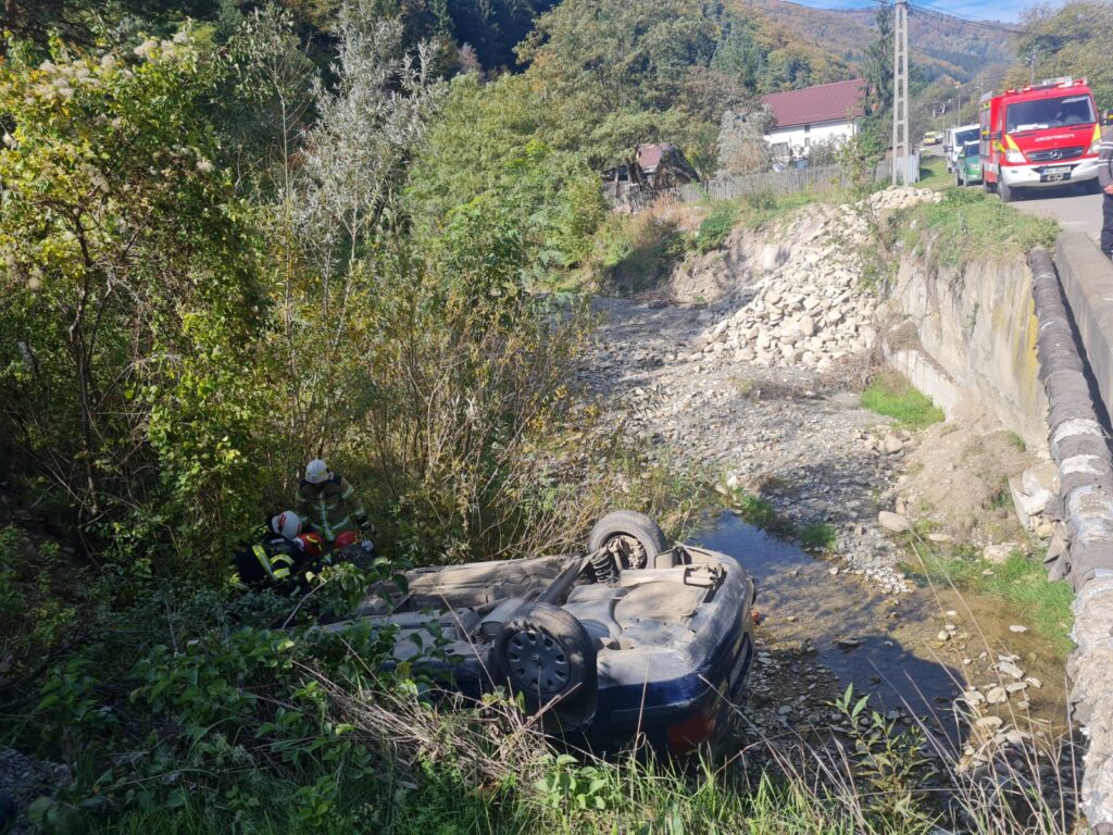 Un autoturism în care se aflau două persoane (un bărbat de 42 de ani și o femeie de 64 de ani) a părăsit partea carosabilă și s-a răsturnat în pârâul Pângărăcior.