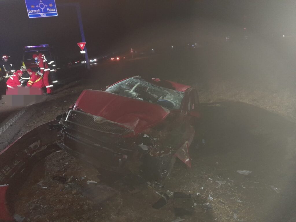 La fața locului intervin pompierii militari ai Detașamentului Rădăuți cu o autospecială pentru descarcerare și o ambulanță SMURD B2.