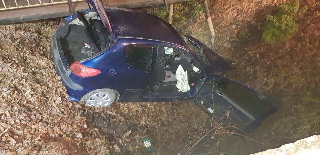 Un tânăr beat criţă şi fără permis a căzut cu maşina într-un pârâu (foto/video)