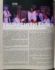 Chiar dacă Italia este ţara care mi-a dat ocazia de a debuta pe o scenă de teatru, România rămâne întotdeauna dorul meu, dar şi visul, de acesta dată, de a putea interpreta un rol într-o zi într-un film românesc sau pe o scenă de teatru a ţării mele”, spune emoţionată actriţa Vasilica Gavrilaş Burlacu.