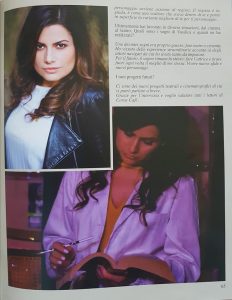 Chiar dacă nu e uşor, deocamdată încerc să mă reprezint pe mine în oceanul artistic al Romei, fiind româncă reprezint indirect România şi sunt mândră de ADN-ul meu românesc. Ori de câte ori am ocazia le vorbesc italienilor despre cultura noastă vastă şi despre tradiţiile noastre. În acest moment fac parte din compania teatrală “Attori in scena”, iar în ultimul timp ne pregătim intens şi repetăm aproape zilnic pentru a pune în scenă o comedie cu care vom debuta curând la teatrele din Roma şi nu numai. Sunt bucuroasă să vă vorbesc despre proiectele mele artistice pe care le am aici.
